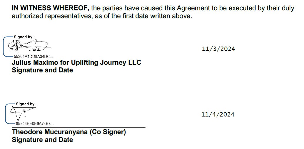 - Mucuranyana co-signed with Uplifting Journey’s Maximo on a lease for a residential treatment facility in Gresham, Oregon in November 2024.