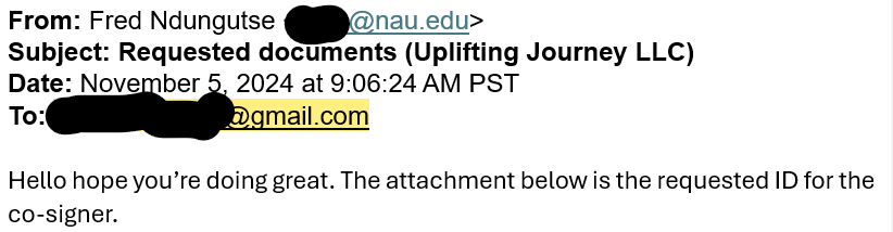 One member/owner of Uplifting Care LLC, Fred Ndungutse, was the point of contact for Uplifting Journey’s Gresham landlord’s communications regarding Mucuranyana’s co-signing the Uplifting Journey lease, according to an email obtained by Oregon Roundup Foundation.